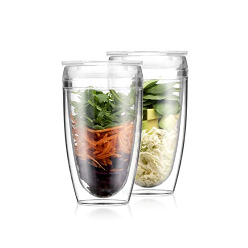 Bodum PAVINA to GO Set med 2 dubbelväggiga plastmuggar, med lufttätt lock, 40 cl