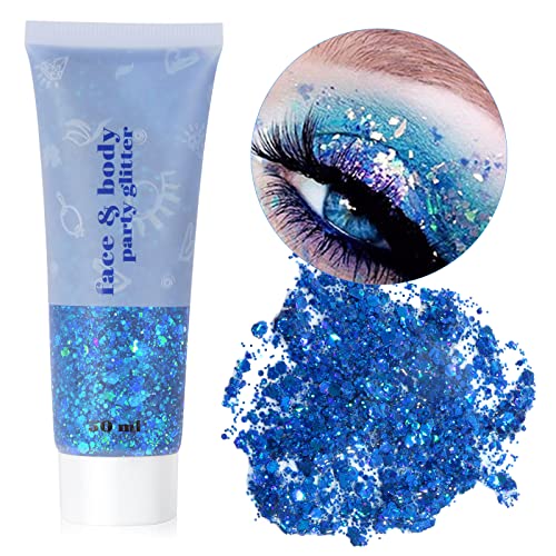 TIDEVAN Body Glitter Gel, 50 ml Holografiska Sjöjungfrupaljetter, Chunky Cosmetic Face and Body Gel, Sparkling Festival Party Lotion för Ansikte, Kropp, Ögon, Hår, Nail DIY Art