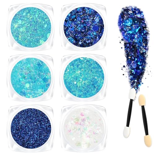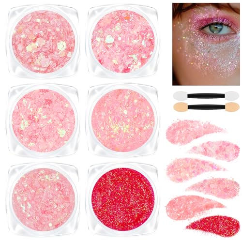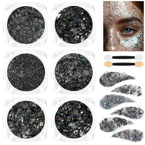 Body Glitter Gel 6 Stycken - Festival Glitter för Ansikte, Hår, Läppar, Naglar - Chunky Glitter Paljett för Party & Teatersmink