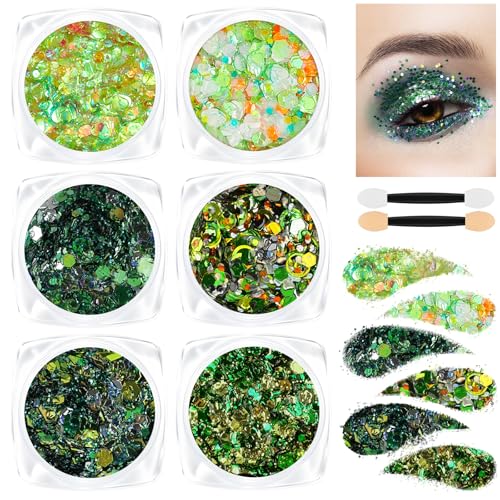 AOOWU Face Body Glitter - 6 färger Chunky Fluorescerande gel paljetter (inget lim) - för ansikte, kropp, hår, halloween, fest, jul, #09