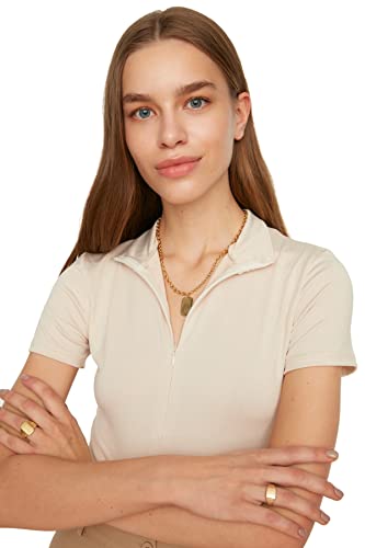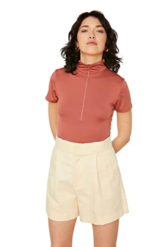 Trendyol Kvinnors kanon dragkedja steep collar snap stickad body t-shirt, extra liten