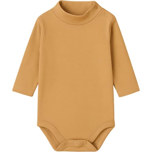 BABIDU Bodysuit babybody långärmad turtleneck 100% bomull, nyfödd body mjukt andningsbart allergivänligt tyg för känslig hud, unisex kläder för baby och flicka dop