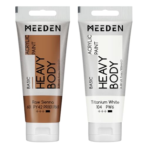 MEEDEN Rå Siena Akrylfärg: Heavy Body Akryl inkl. extra Titanvit Tub, 2 x 100 ml Högpigmenterad Acrylic Paint Set