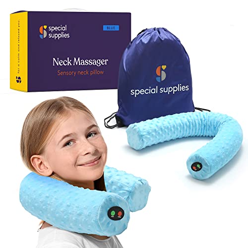 Special Supplies Sensory Vibrating Neck Pillow for Kids and Adults Plush Velvet Soft Cover with Textured Therapy Stimulation, Mind and Body Calming Relaxation - Blue