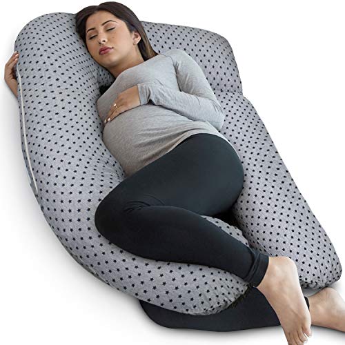 PharMeDoc Pregnancy Pillow, U-Shape (Stars Pattern, Detachable) Full Body Pillow and Maternity Support - Support for Back, Hips, Legs, Belly for Pregnant Women