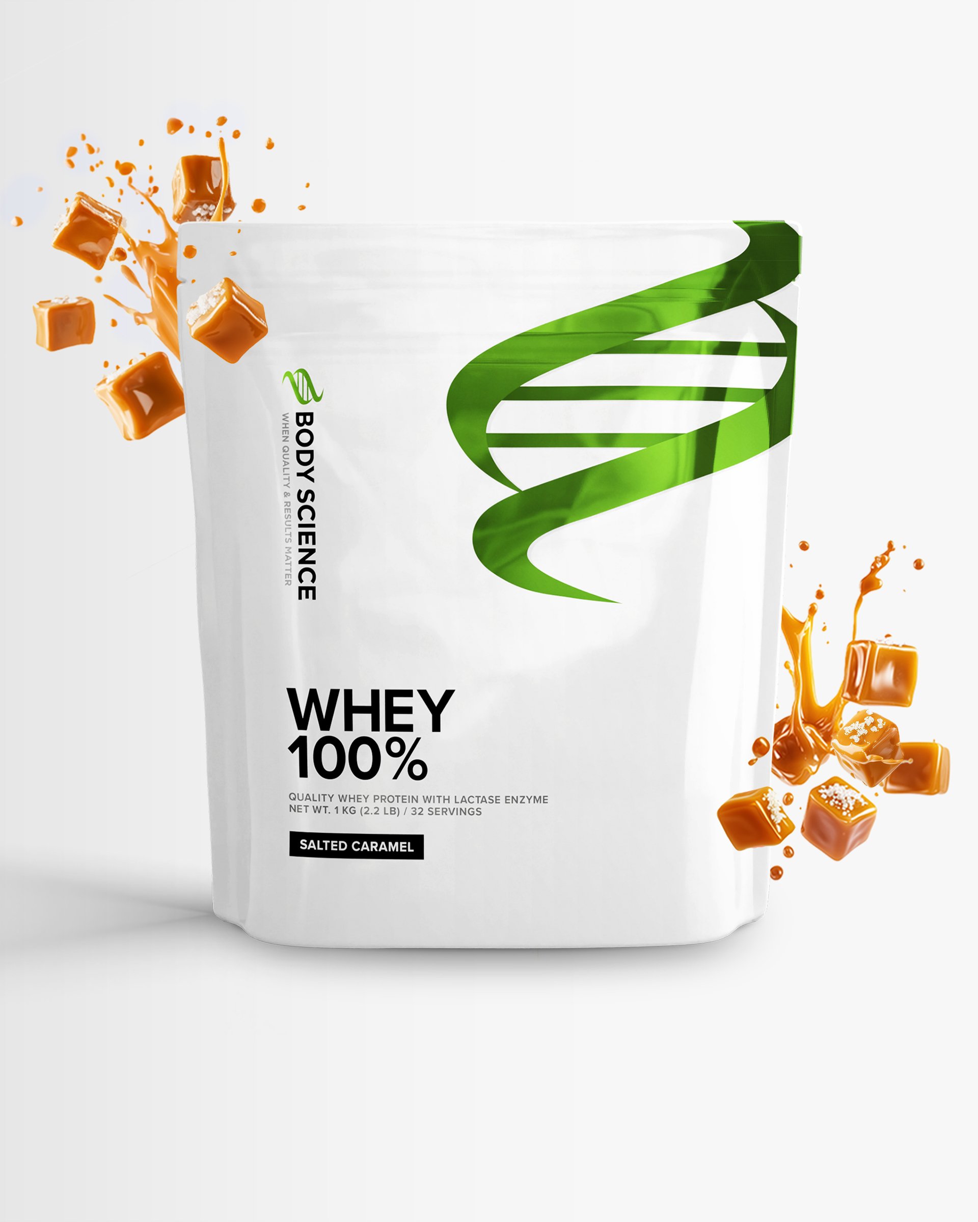 Proteinpulver Whey 100% - 1 kg - Salted Caramel - Body Science - Vassleprotein, Protein