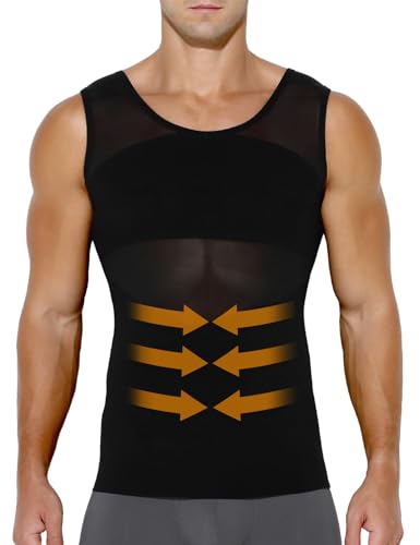 SLIMBELLE Body Shaper herr elastisk undertröja herr snäv kompression skjorta midjeformare figurformande mage väg skjorta män, svart, XL