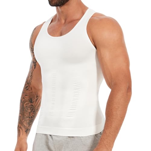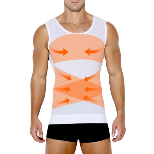 FINN Figurformande kompressionströja för män med magkontroll effekt – ärmlös formkläder linne av bomull – body shaper undertröja för en platt mage, Vit, XXL