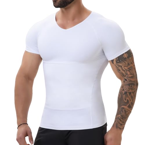 SLIMBELLE Body Shaper herr kompressionströja snäv elastisk V-ringad smal figurformande mage väg underkläder undertröja form undertröja formande underkläder topp män, Vit, M