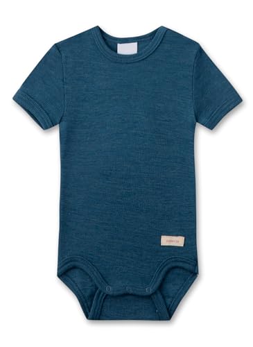 Sanetta babybody, kortärmad, blå av merinoull och siden, högkvalitativ och hållbar body för flickor och pojkar av ull-sidenmix. Babybody, blå, 80