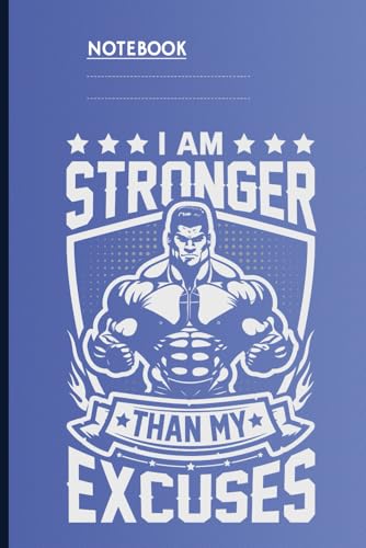 I Am Stronger Than My Excuses With Muscular Bodybuilder Illustration On Blue Cover: Notebook