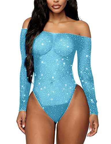 Teyli bodysuit dam body elegant – meshtop body dam elegant – sexig body dam gjord av viskos och nät med tillsats av lycra-fiber, blå, S