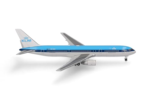 herpa 537759 Aircraft KLM Boeing 767-300, miniatyr i skala 1:500, samlarobjekt, modell utan stativ, metall, blå, vit