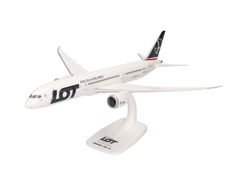 herpa Snap-Fit modellflygplan Lot Polish Airlines Boeing 787-9 Dreamliner, miniatyr i skala 1:200, samlarobjekt, modell med stativ, plast