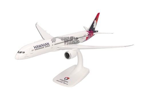 Herpa Snap-Fit modellflygplan Hawaiian Airlines Boeing 787-9 Dreamliner – N781HA Huahi miniatyr i skala 1:200, samlarobjekt, modell med stativ, plast, vit