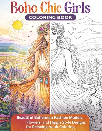 Chic Boho Chic Girls Coloring Book: A Beautiful Bohemian Fashion Models, Flowers, and Hippie Style Designs for Relaxing Adult Coloring Creative Fun 112 page
