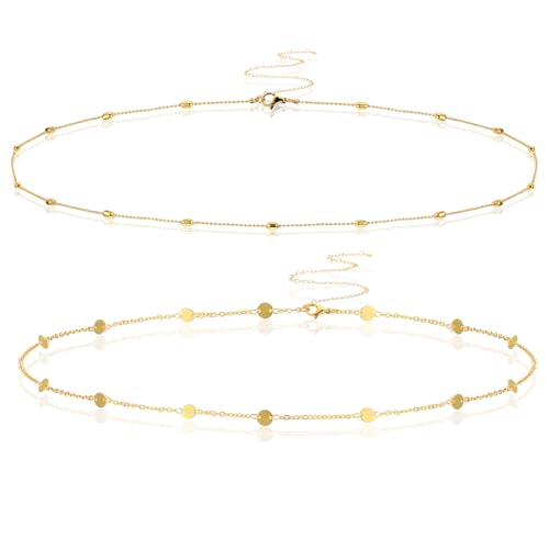2 guldplaterade magkedjor, kvinnor, sexiga bikini, strand sele midjepärlor, boho body chain, belly chain, 66-91cm, rostfritt stål, ICKE-ÄDEL METALL