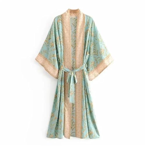 Dam blommigt tryck fladdermus ärm Rayon Strand bohemisk kimono damer V-hals boho rock bikini cover-ups, EN8, L
