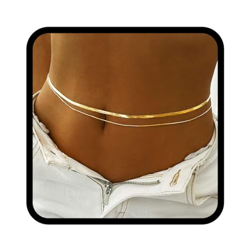 Handcess Boho lager magkedja guld bikini mage midjekedjor strand kroppskedja för kvinnor och flickor, en storlek, Kedja, Kedja
