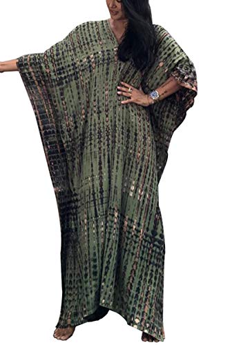L-Peach Boho-kimono för kvinnor, lång cardigan, rymliga myskläder, överdimensionerad kaftan, strandklänning, täckande kläder, morgonrockar, En mörkgrön, en storlek
