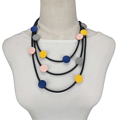 Homeilteds Flerfärgade Halsband Dam, Trähalsband Kvinnor, Gummi Rep Smycken, Boho Kläder Accessoarer Tröja Kedjor Mode (Metallfärg: Flerfärgad 1)