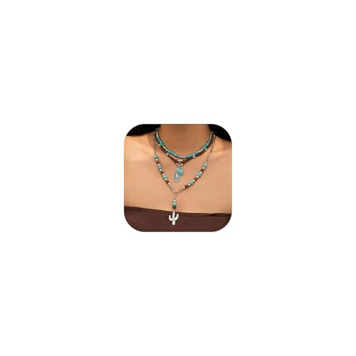 YANCHUN Västerländsk halsband för kvinnor västerländska smycken turkos pärla läder kraghalsband boho halsband för kvinnor land konsert kläder, Metall, Ingen ädelsten