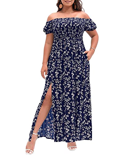 Pinup Fashion Black Floral Sundress Plus Size Off Shoulder Maxi Dress with Slit Women Summer Boho Long Flower Flowy Beach Dresses