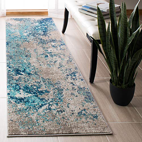 Safavieh Boho-matta för vardagsrum, matsal, sovrum, Madison-kollektion, kort lugg, i blått och grått, 66 x 366 cm
