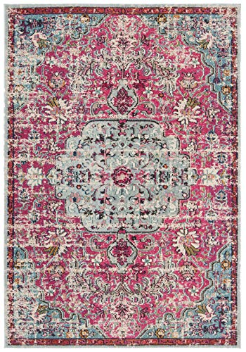 Safavieh Boho-matta för vardagsrum, matsal, sovrum, Madison-kollektion, kort lugg, i fuchsia och grönblå, 66 x 122 cm