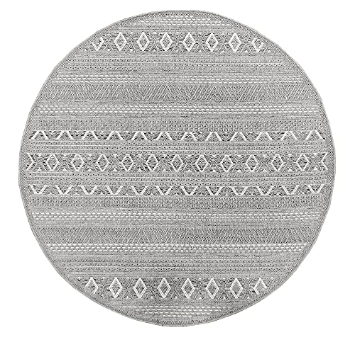 Mia's mattor Adora – modern matta, boho-stil, lämplig för inomhus- och utomhusbruk, särskilt platt, perfekt för kök och matsal men också för balkong eller terrass, design 1, 95–grå, 160 cm rund