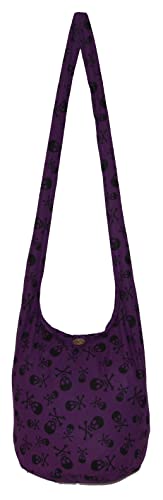 Skull Bohemian Boho Hobo Hippie Gothic Crossbody Bag Purse 33" Black (DarkPurpleBlack)