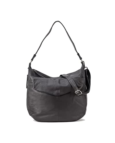 BIBA Damväska i äkta läder, Boho lädertröja X JEX5L väska, kort och långt handtag, dragkedjestängning, legitimt bovinläder, svart, Bohemisk