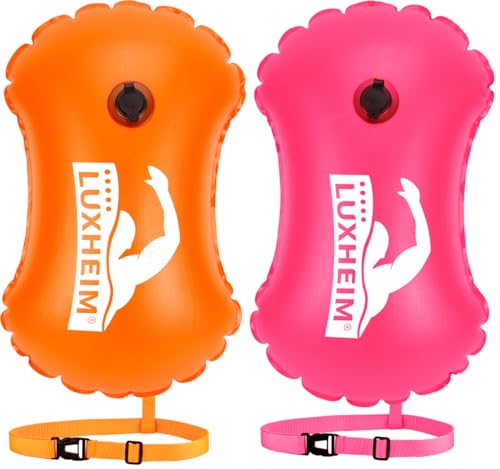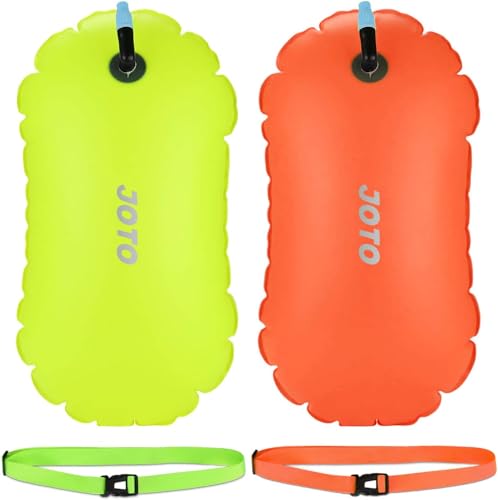 [2-pack] JOTO simboj, mycket synlig simbubbla säkerhetsboj boj boj boj, med justerbart midjebälte, för simning i öppna vatten, triatleter, kajaker, snorklare, säker simträning – orange/neongul