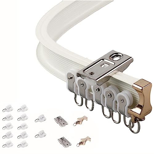 Jetec Böjt spårfäste för gardinskena, för takgardin, våningssäng, burspråk och rumsavdelare, flexibel, böjbar och rak, 2 m, vit