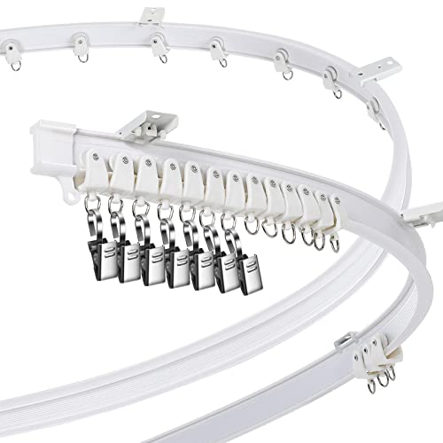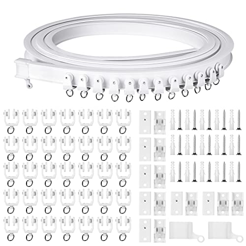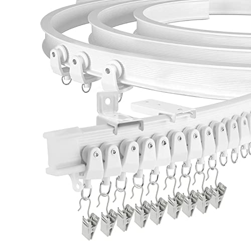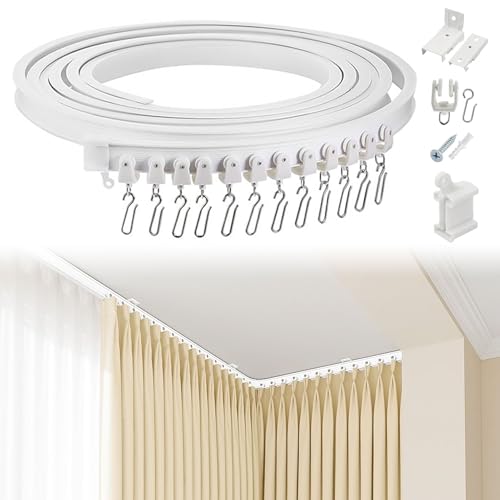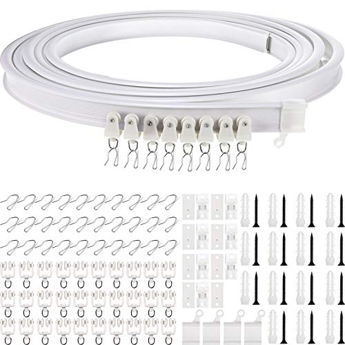 Böjbar takgardinskena för burspråk, 4,87 m (16 fot) (cirka 5 meter) flexibel böjd gardinskena för tak- eller väggmontering, slitstark plast, gardinskenor med spårsystem för sovrumsavdelning