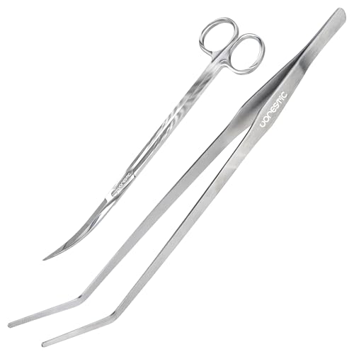 VORESTIC Böjd Akvarium Pincett (38 cm) och Böjd Akvarium Sax (25 cm) – Akvarium Tillbehör, Terrarium, Aquascaping