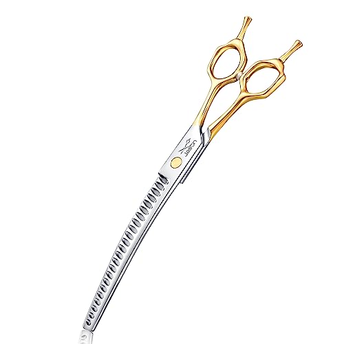 HASHIMOTO Böjd sax för grooming av stora hundar, 8,0 tum, utformad för professionella groomers eller familjens DIY-användning.