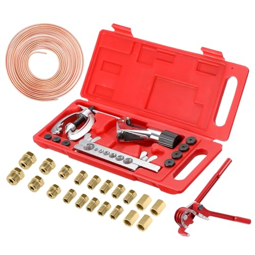 GEARMONSTER bromsledning flänsapparat dubbel och enkel flänsapparat för bromsledning, 7,62 m Ø 4,75 mm bromskabel med 16 anslutningar + 4 kontakter, böjtång, bromsledningskit