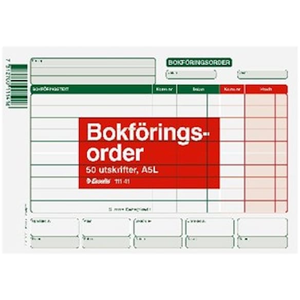 Blankett bokföringsorder | A5L 1x50 blad | 10st
