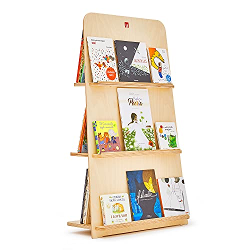 Bianconiglio Kids BUK Professionell Montessori-bokhylla med Hide&Show-system för bokrotation gjord av förstklassig björk tillverkad i Italien, EN71 (utan tillsatta färger)