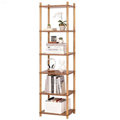 YGYQZ Bokhylla, 6-nivås hög vertikal bokhylla med stor kapacitet, gör-det-själv stapelbar bokhylla i trä och metall, lämplig för vardagsrum, kontor, sovrum och studier