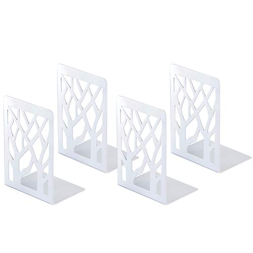 Set med 2 par bokstöd för hyllor, tunga böcker, bokhylla i metall, vit bokhylla för heminredning, bokhållare för hyllor, bokstöd