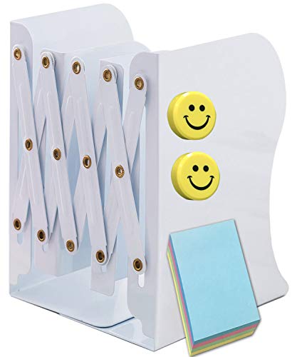 Qualsen Justerbart bokstöd i metall för skrivbord, robust och halkfritt bokstöd för hem, kontor, skola, bokhylla (vit, storlek M)