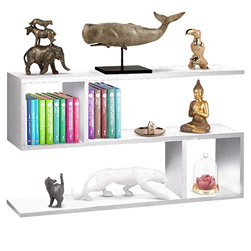 BAKAJI Bokhylla Låg hylla 3 hyllor trä MDF och metall Soffbord Kaffe Sida soffa Design Modern Design Vardagsrum Hem Kontorsmöbler 50 x 50 x 50 cm Färg Vit