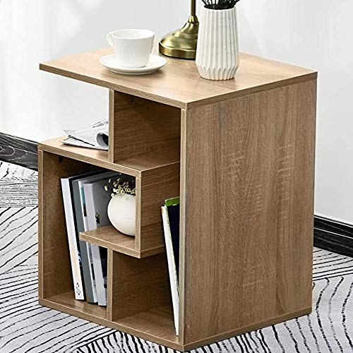 BAKAJI Låg bokhylla 4 hyllor i trä MDF sidobord kaffe sida soffa modern design inredning för vardagsrum vardagsrum hem eller kontor storlek 45 x 40 x 55 cm (ek)