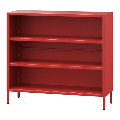 Jan Nowak Låg Bokhylla Metall – Luca | 2 Justerbara Hyllor, Industriell Stil | Stående Hylla för Vardagsrum, Sovrum, Liten Hylla | 100 x 90 x 35 cm | Röd