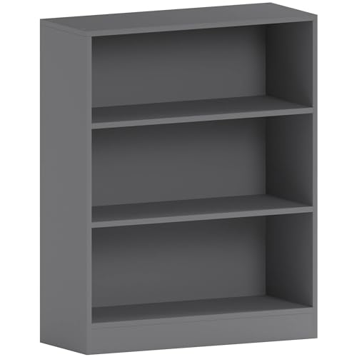 Vida Designs Cambridge 3 nivåer låg bokhylla, grå trähylla display förvaringsenhet kontor vardagsrum möbler