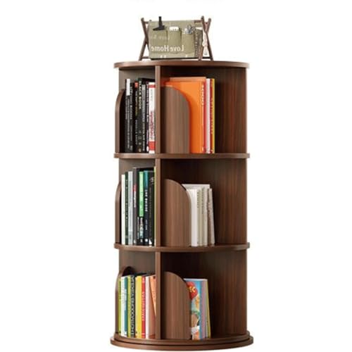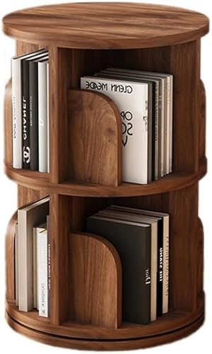 Roterande bokhylla i flera nivåer i massivt trä för vardagsrum – brun hylla med bildbokförvaringshyllor – bokhylla bokhyllor för snygg organisation