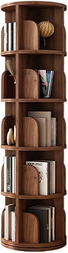 OMGGYER Vridbar bokhylla i 5 nivåer fristående roterande hylla 360° roterande bokhylla, multifunktionell bokhylla, massivt trä, golvstående förvaringshylla för barn och vuxna, 45 x 160 cm