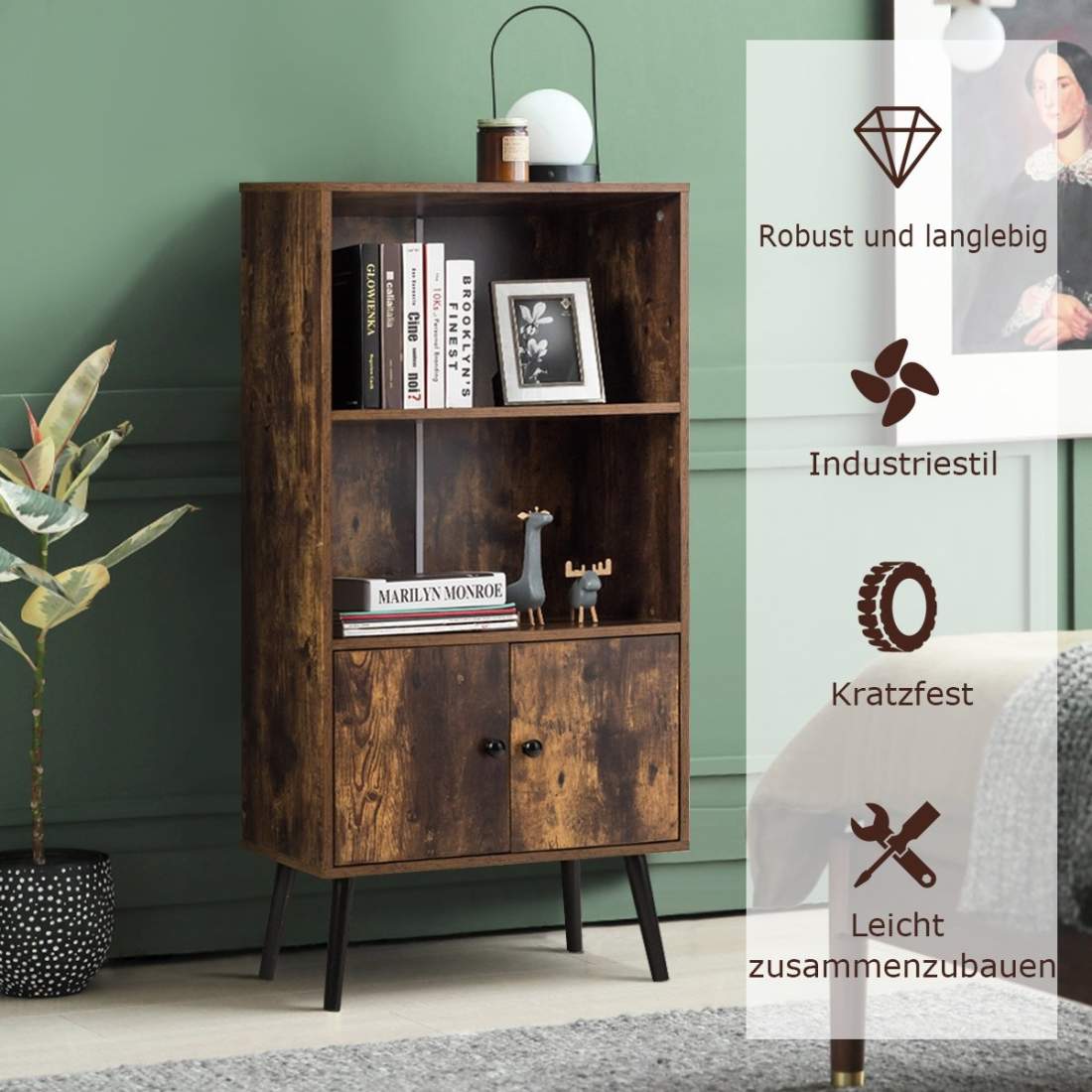 Vintage bokhylla med 3 hyllor & 2 dörrar – massivt trä